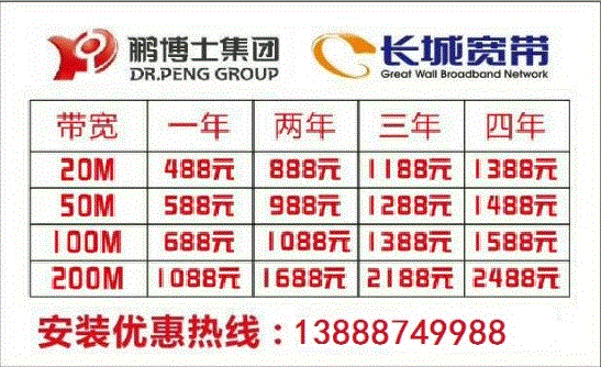 鹏博士特惠688元一年100M宽带
