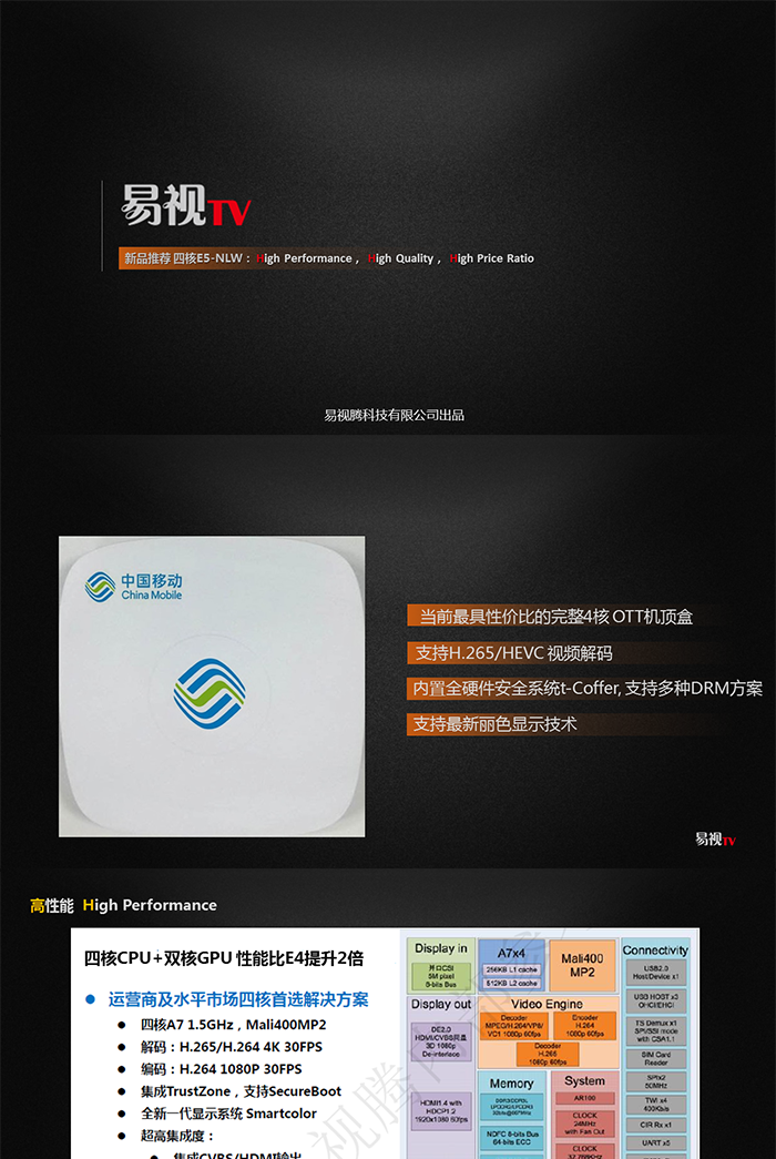 昆明移动网络电视机顶盒易视腾IS-E5-NLW