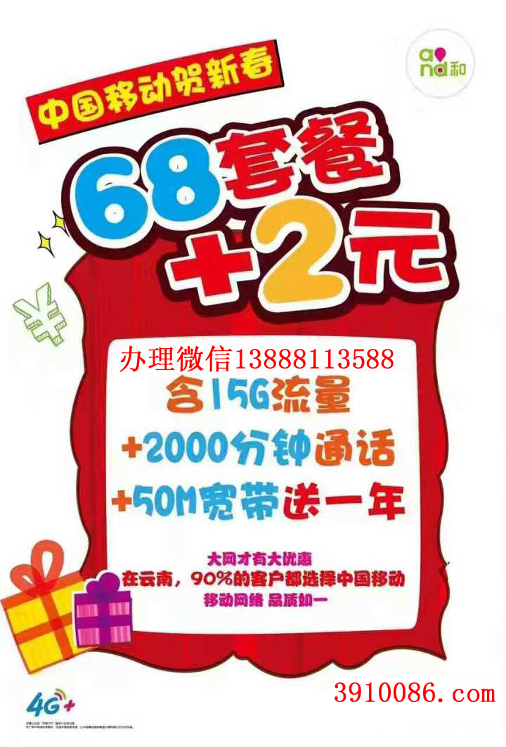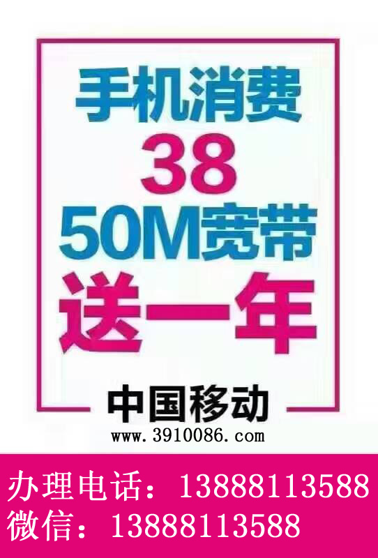 昆明移动手机消费38或68元50M宽带送一年